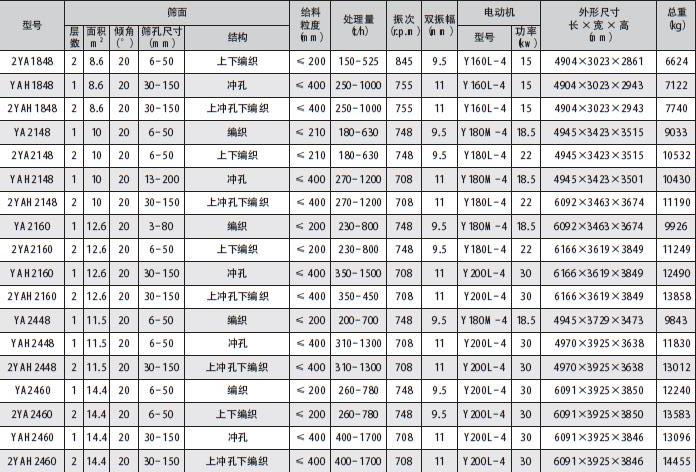 YA型圓振動篩用途與特點